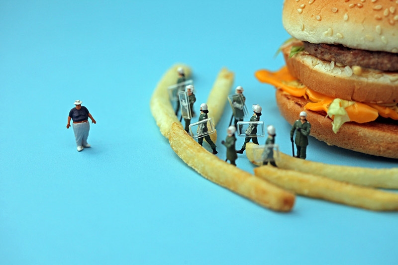 In zijn collectie “Big Appetites” maakt hij op een humoristische manier foto's van alledaagse situaties met miniaturen in een landschap van eten. Hij gebruikt o.a.: aarbeiden, pasta, macarons, hotdog etc.